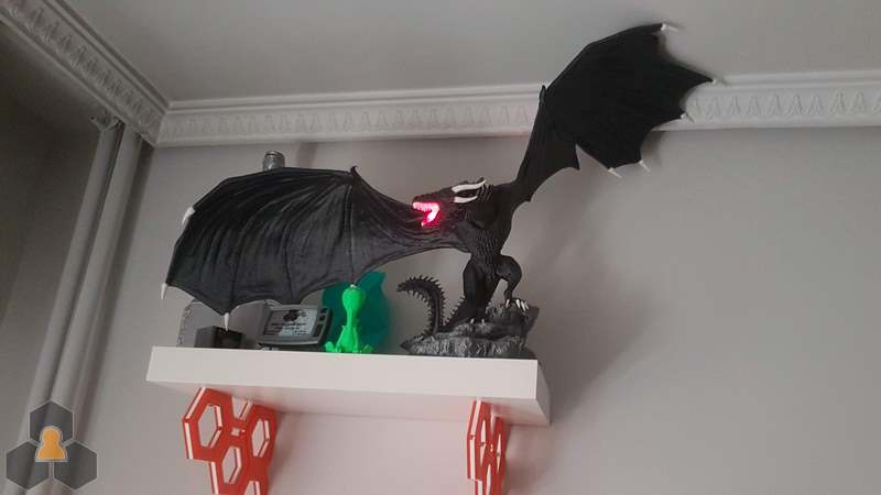 Dragón Viserion de la serie de HBO Juego de Tronos, realizado con filamento PLA Vertigo grey, PLA Fervi hueso, y Sakata Red Ingeo.
