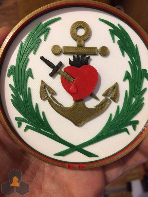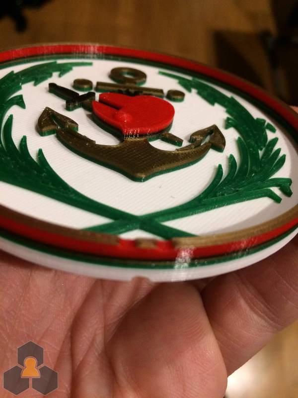 Logotipo plano impreso en varios colores con cada color a una altura de capa.